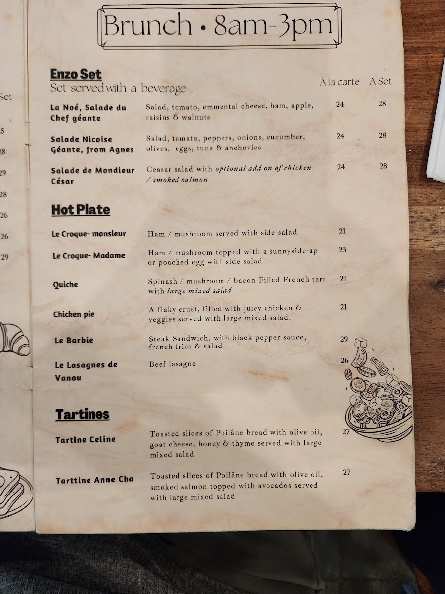 Choupinette offers a thoughtfully curated menu that reflects the charm of a French café nestled in the heart of Bukit Timah. The selection is approachable yet satisfying, featuring casual bites and comforting drinks that pair well with the restaurant’s warm and intimate atmosphere. Whether you’re stopping by for a quiet weekday breakfast or a relaxed weekend brunch, the menu strikes a balance between classic French flavors and familiar favorites.